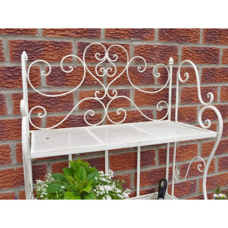 Cette étagère en métal blanc vieilli pourra accueillir de nombreuses plantes grâce à ses 3 niveaux.