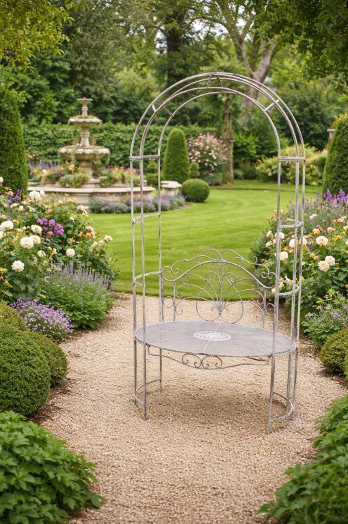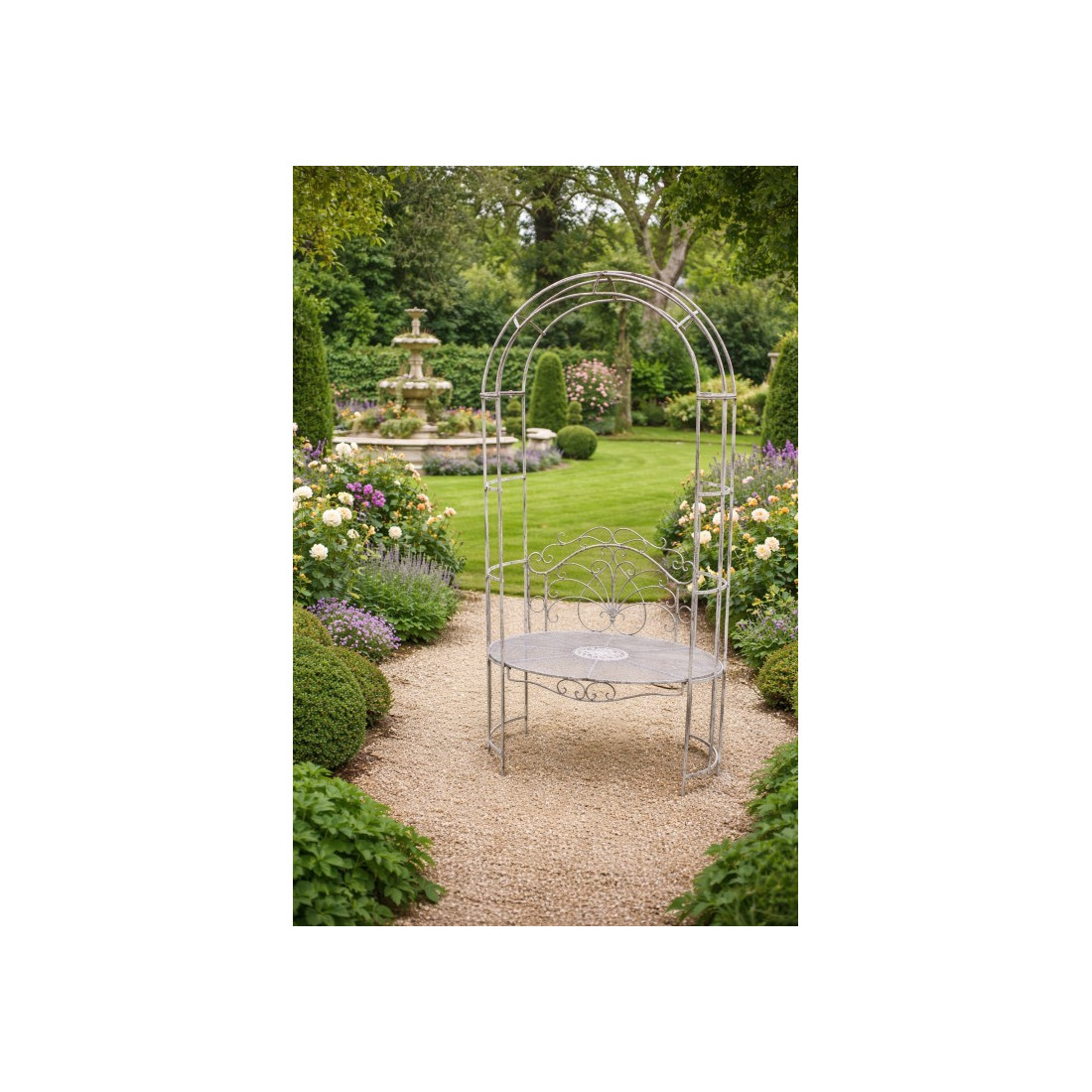 Banc de jardin ovale avec arche patiné antique
