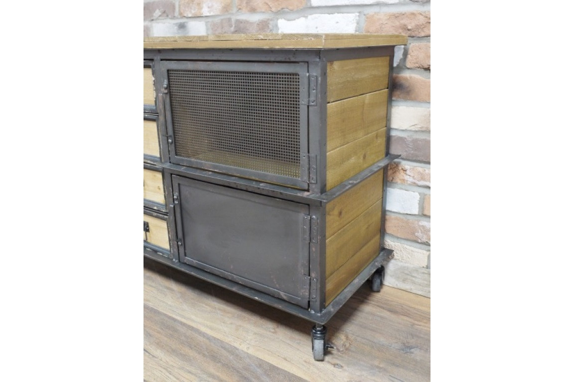 Meuble sur roulettes 4 portes et 4 tiroirs Industriel