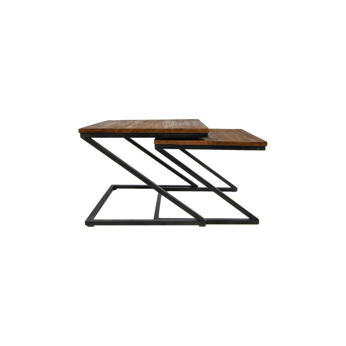 Table de salon design à deux plateaux en bois et métal Zig Zag
