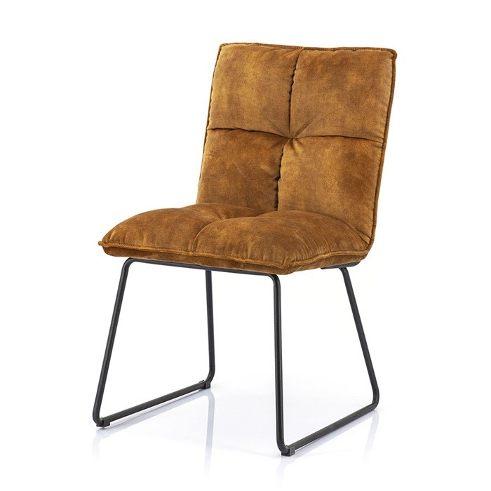 Cette chaise de salle à manger en tissu a tout du coussin. La finesse de son piètement métallique met encore en valeur le moelleux de son assise et de son dossier, dont le tissu est de couleur cognac. Rebondie, elle arbore une silhouette généreuse taillée pour le confort. Fini les petites chaises trop fermes et trop étroites ! Pourquoi ne profiteriez-vous pas d’une chaise de salle à manger confortable ?