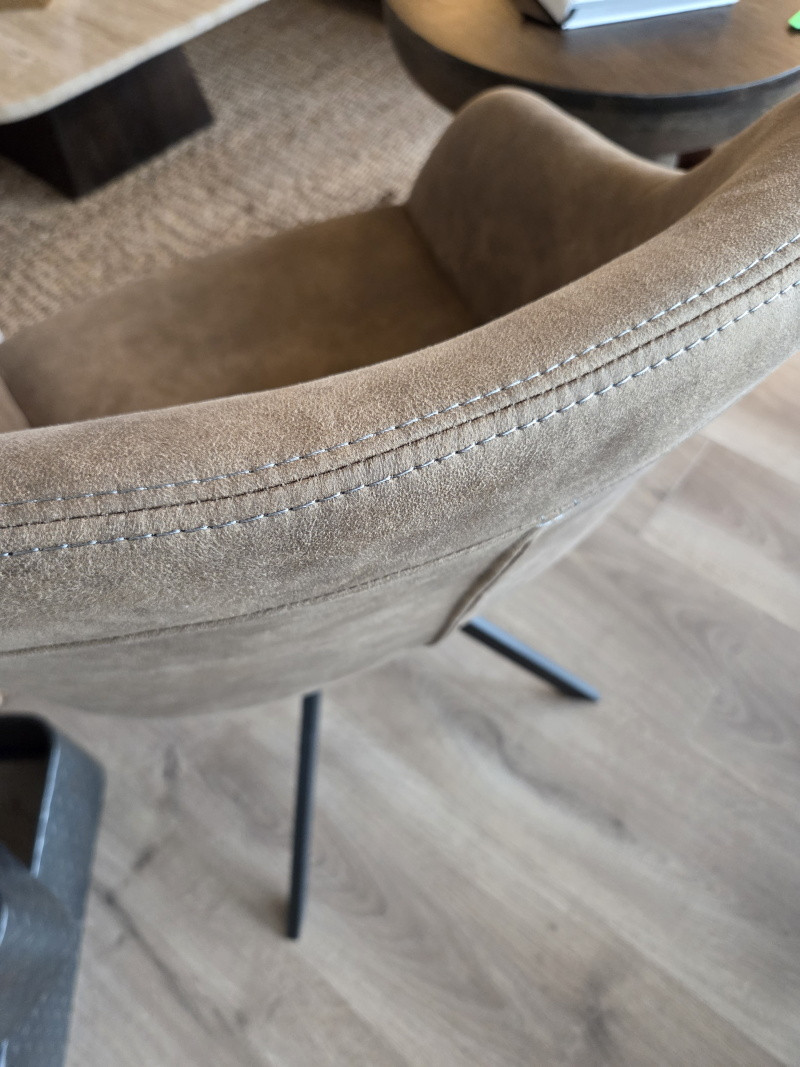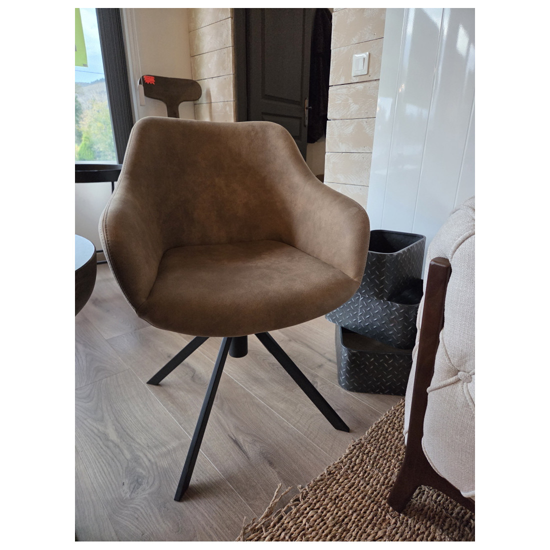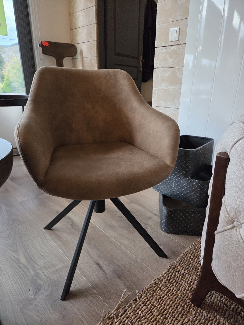 Ce petit fauteuil pour bureau est le siège tout indiqué pour les pièces exiguës ou pour ceux qui cultivent l’art de la sobriété et un style épuré dans le bureau. Le tissu qui recouvre l’assise se décline en trois coloris aussi sobres que les lignes de l’assise : gris anthracite, marron cognac ou brun cowboy. Des tons doux et discrets qui accompagnent votre concentration au bureau. Dans la salle à manger, ce fauteuil apporte également un côté loft grâce à son piètement métallique noir et son caractère pivotant.