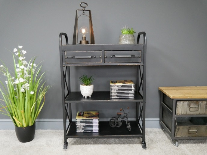 Dans la cuisine, cette desserte entièrement en métal gris effet vintage est également bienvenue pour désencombrer le plan de travail ou disposer de ses ingrédients sous la main. Gagnez en confort grâce à ses roulettes et ainsi vous faciliter les tâches au quotidien...