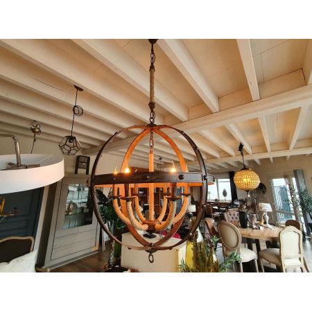 Le métal de la structure est volontairement vieilli dans des tons de rouille, sans parler de la corde qui apporte à ce splendide lustre cette originalité que vous ne trouverez pas dans un autre luminaire du même style.