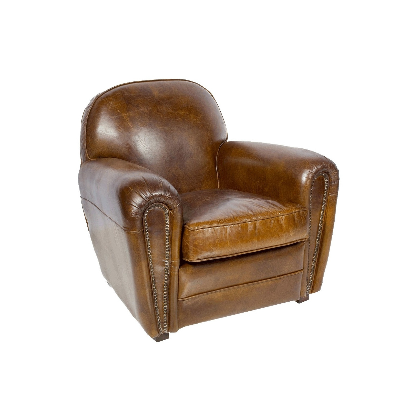Si vous aimez les meubles vintage, ce fauteuil club en cuir marron ou noir ne peut que vous plaire. Il est en effet entièrement conçu en cuir de vachette, ce qui lui confère un aspect foncièrement authentique et vous offre un siège de haute qualité. Elégant pour le regard mais aussi très agréable au toucher, le cuir a également l’avantage de bien vieillir : ce fauteuil club est ainsi une pièce qui se bonifie au cours du temps. Plus vous vous y asseyez, plus le cuir se patine, pour créer une véritable alchimie avec les clous vieillis qui ornent les supports des accoudoirs.