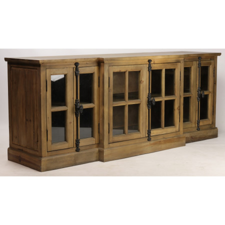 Enfilade en pin recyclé vitrée