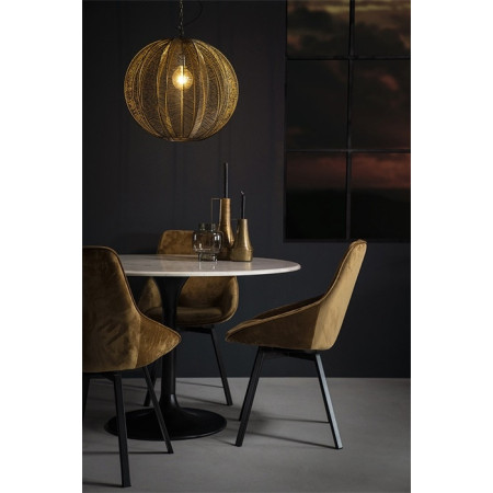 Cette suspension luminaire ronde allie une conception en métal à un design original, presque futuriste. Vous pouvez profiter de cette suspension pour chambre ou dans le salon avec ses deux versions opposées par leur couleur. L’une est en effet dorée, l’autre teintée en noir. Si la forme est la matière restent les mêmes, l’effet produit par le luminaire change du tout au tout.