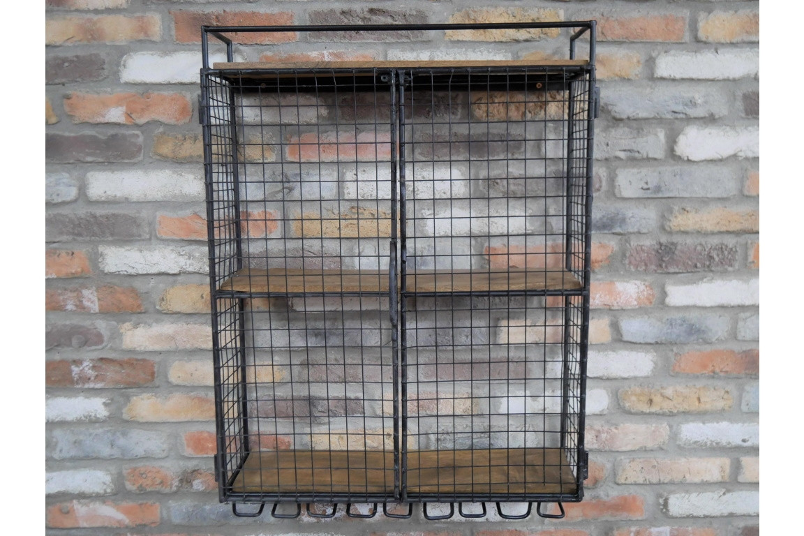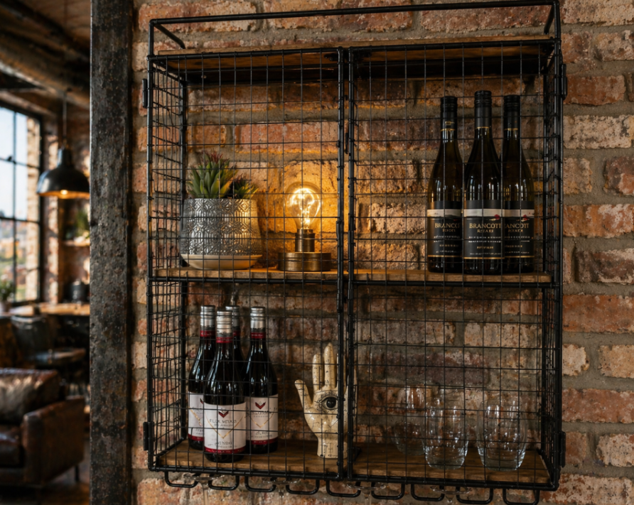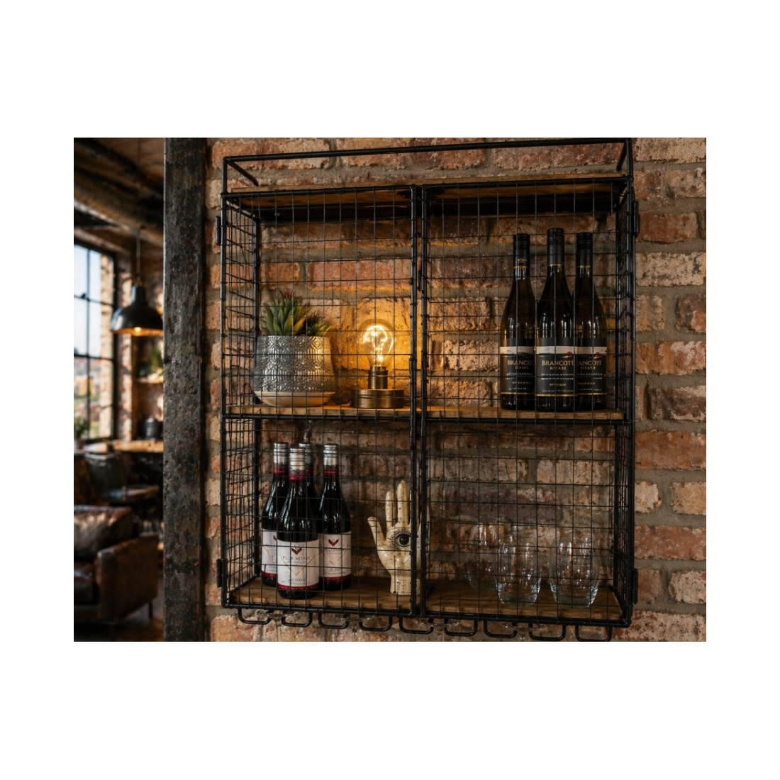 Exposez vos meilleures bouteilles à vin ainsi que vos verres à pied dans cette étagère murale grillagée au style indus très actuel !