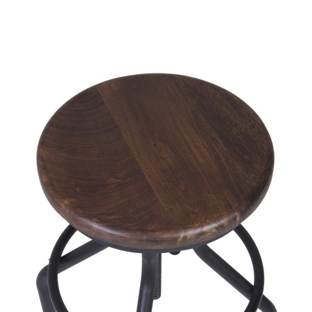 Ce tabouret rond en métal et bois massif s'adaptera parfaitement à votre intérieur style industriel de plus son assise réglable facilite son utilisation, pour vous comme pour vos invités ! En effet, vous pourrez aussi bien utiliser ce tabouret derrière votre bar de comptoir, votre îlot de cuisine ou autour de votre table, puisque sa hauteur est réglable de 50 cm à 76 cm de haut.