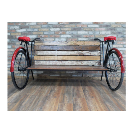 Voici un banc très original à placer dans votre jardin ou sur votre terrasse. De style industriel, fabriqué en bois et en métal, il viendra décorer votre extérieur. Très original, les pieds de ce banc indus en bois et métal sont de vieux vélos recyclés.