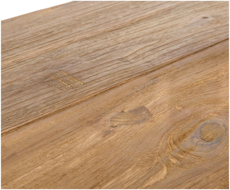 La personnalité de cette table de jardin en bois rustique et très résistant, repose sur sa composition 100 % teck naturel brut avec un effet vieilli qui résiste aux intempéries. Des pieds au plateau, tout est en effet réalisé dans cette essence exotique aux nuances naturellement chaudes et chaleureuses. Au cours du temps, le soleil et le travail naturel du bois créeront en outre de nouveaux motifs et de nouvelles craquelures qui contribueront à enrichir le caractère rustique et campagnard de cette table en bois massif pour extérieur qui ne demande qu’à être entourée de chaises et fauteuils de jardin confortables.