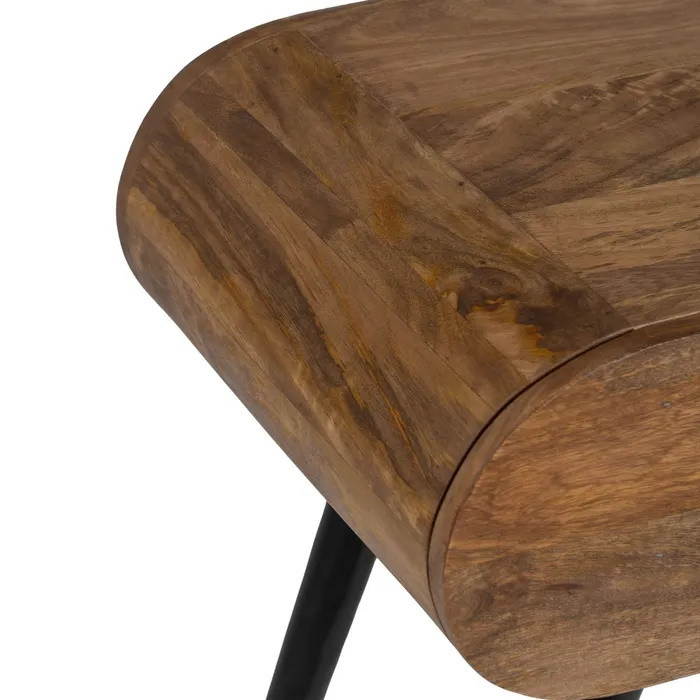 En bois massif de manguier et montée sur des pieds métalliques cette table de chevet Livu, s'intègrera facilement dans une chambre à coucher au look design comme dans une décoration plus vintage. En effet, son plateau aux lignes arrondies et ses pieds ronds et de forme compas lui procurent un côté vintage tout à fait dans l'air du temps.