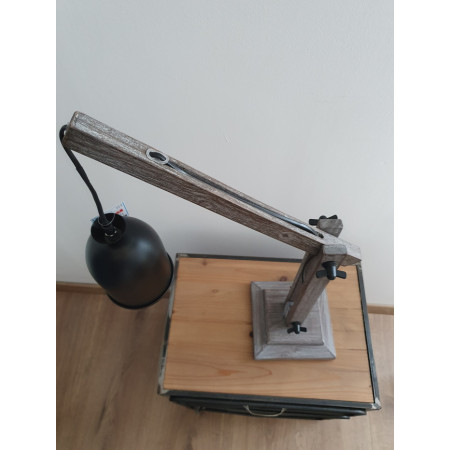 Lampe à poser en bois patiné et métal