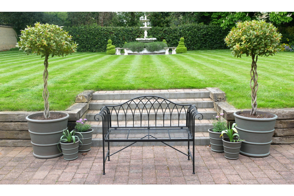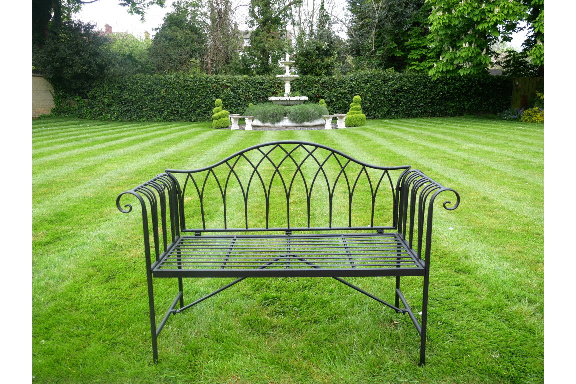 On trouve toujours une place dans son jardin ou sur sa terrasse pour un joli banc en métal avec accoudoirs arrondis.
