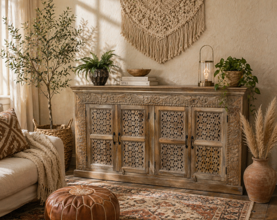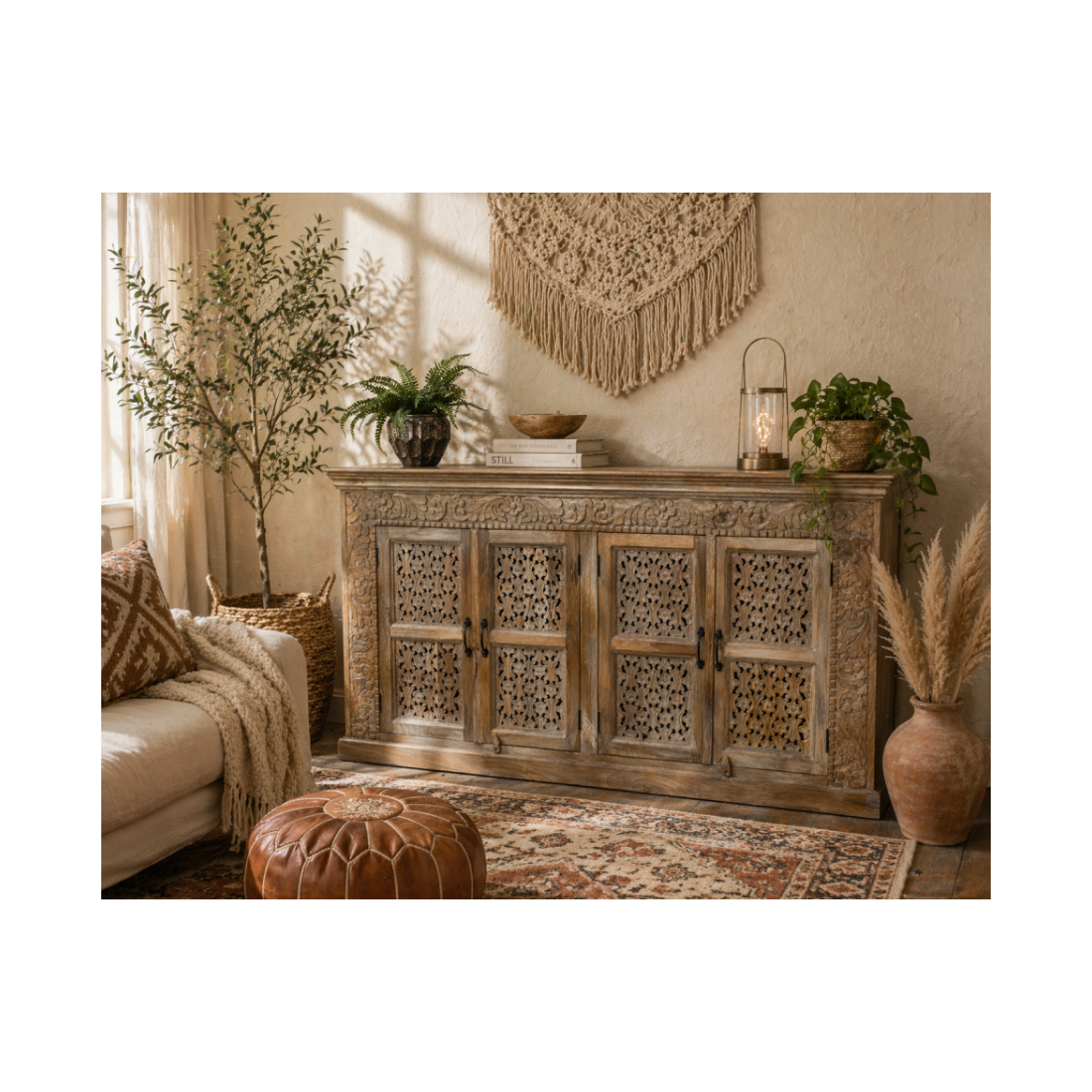 Buffet 4 portes en manguier sculpté et ajouré