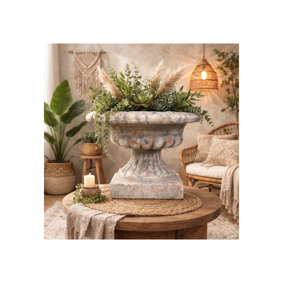 Magnifique vase Médicis joliment recouvert d'une patine avec un effet antique très réussi. Avec son large diamètre de 62 cm vous pouvez y déposer un grand bouquet de fleurs ou un pot avec une plante afin de le mettre en valeur. Réalisé en oxyde de magnésium MGO, ce matériau très résistant permet d'utiliser ce très beau vase Médicis en extérieur sans craindre les intempéries.