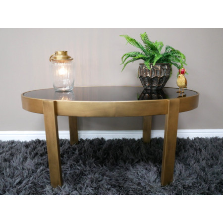 Table basse métal couleur bronze et verre fumé