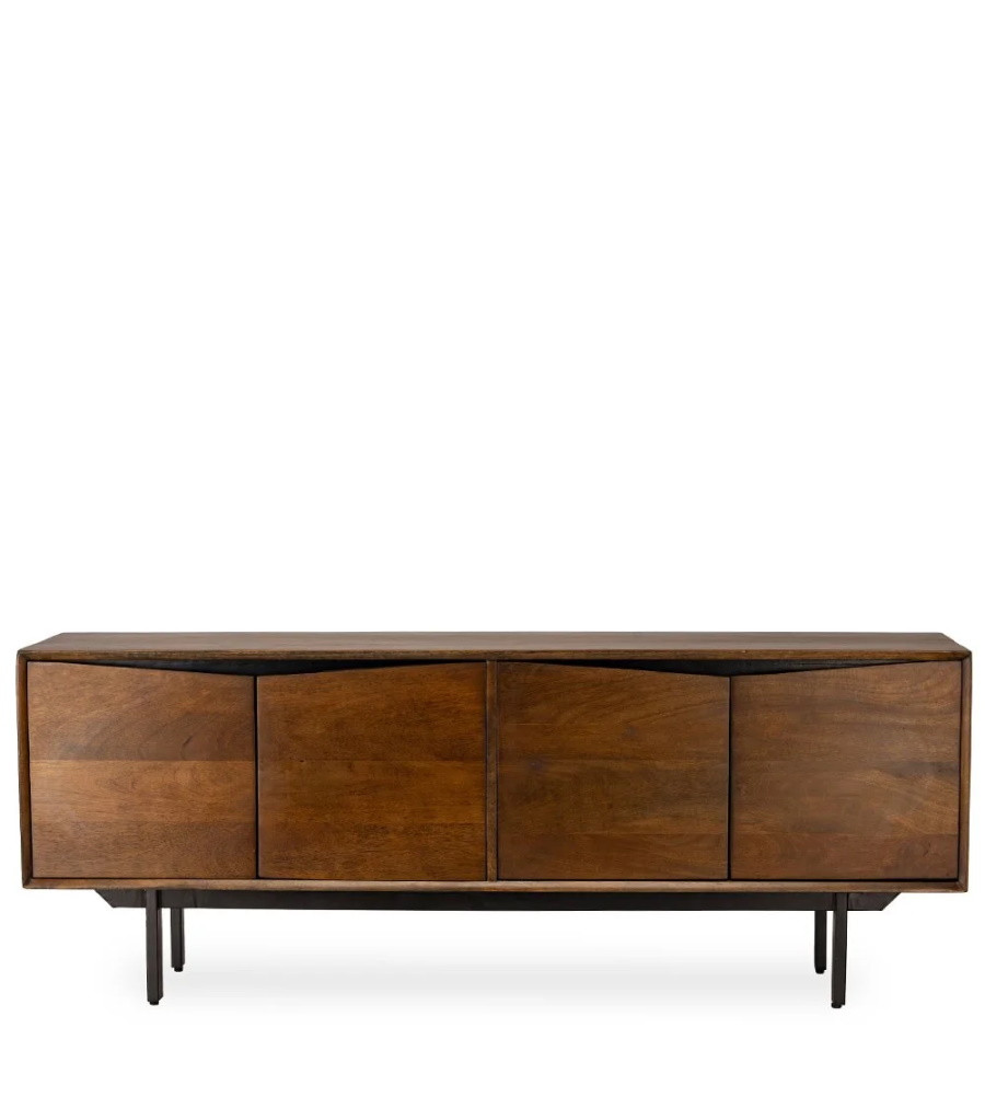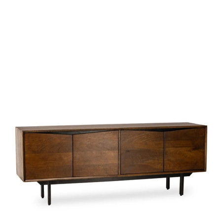 Meuble TV 4 portes en manguier teinté et métal