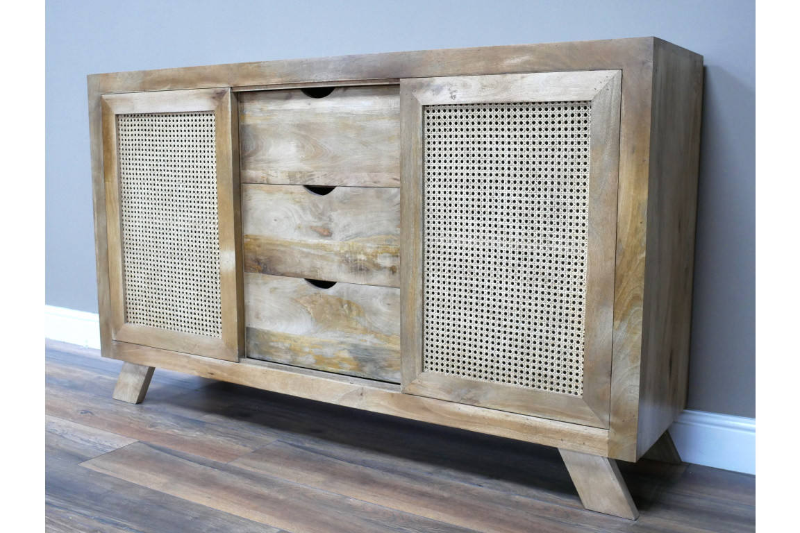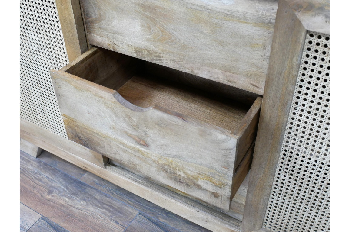 Buffet deux portes en rotin coulissantes et trois tiroirs