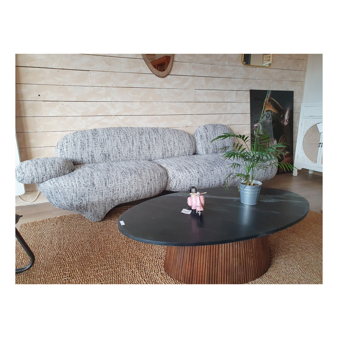 Ce canapé en tissu aux magnifiques courbes apporte un certain caractère qui vient adoucir l'ensemble des autres meubles de votre salon avec calme et sérénité. Avec sa longueur de 2,65 m vous pourrez accueillir sur ce grand canapé design le plus grand nombre d'invités et pourquoi pas s'en servir de lit d'appoint. Son assise rembourrée à la haute densité (35/40 kg/m3) offre un confort ferme et durable dans le temps. Le tissu chiné, très tendance dans nos décorations d'intérieurs, vient recouvrir l'ensemble de ce grand canapé Barkley jusqu'à camoufler subtilement ses pieds, une vraie œuvre d'art !