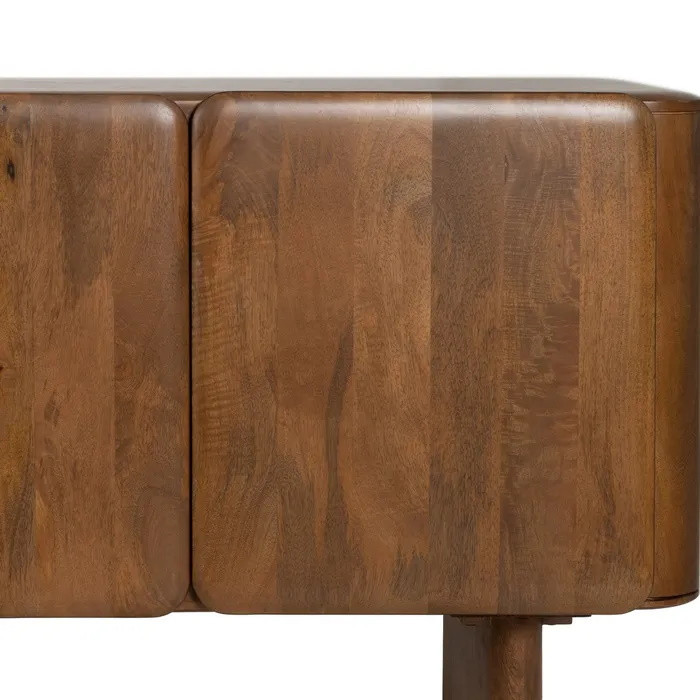 Dans un style vintage tout à fait dans l'air du temps, ce magnifique bahut 3 portes est réalisé dans un bois de manguier massif. Sa teinte foncée et ses angles arrondis lui procurent un côté rétro qui se mélange facilement avec n'importe quelle décoration d'intérieur.