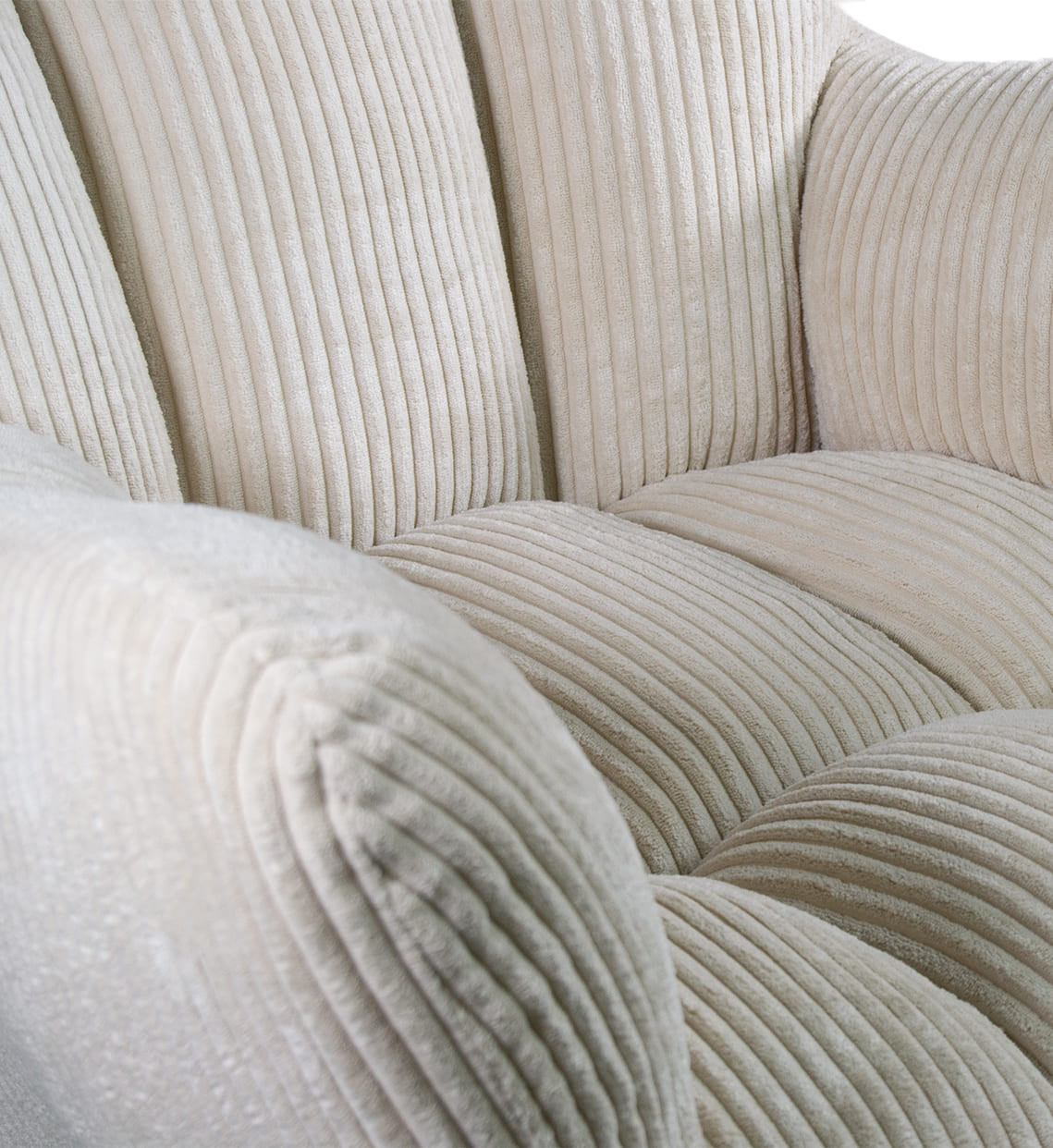 Avec son haut dossier et ses accoudoirs, ce siège à bascule en velours beige offre une assise particulièrement agréable. Les courbes du dossier comme de l’assise ont été pensées pour accueillir confortablement l’utilisateur, qui n’a plus qu’à donner un petit coup de pied pour lancer le mouvement d’avant en arrière qui produit cette sensation si agréable de bercement qui fait son succès depuis sa création.