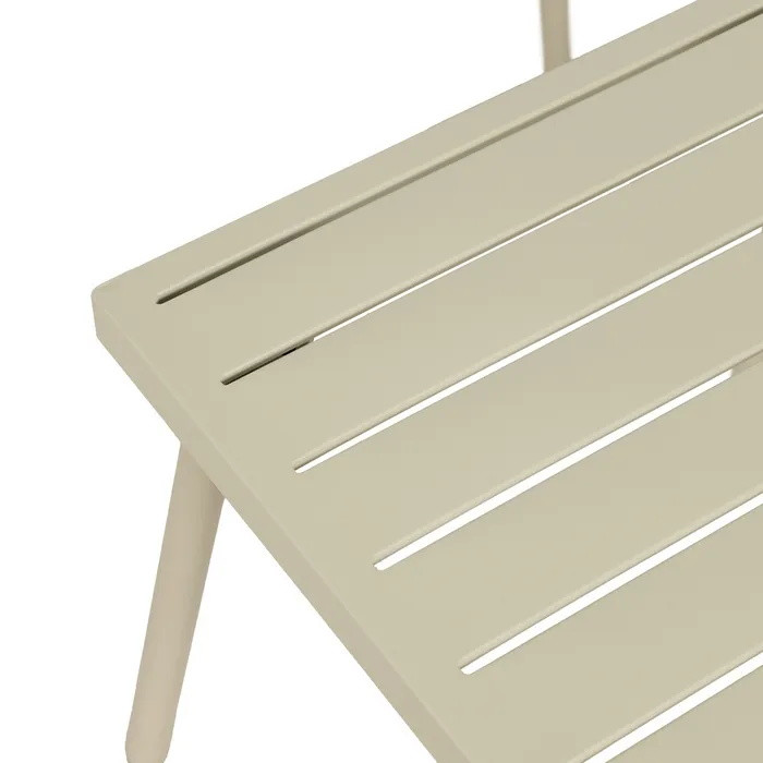 Prenez une pose bien méritée sur le coussin bien moelleux de la méridienne pour boire un thé ou un café ou pour lire. Vous pourrez poser votre tasse sur la table basse carrée en métal ajouré beige. Les coussins des chiliennes sont en oléfine, un textile tissé doux et léger conçu pour un usage extérieur et rembourrés de coton de polypropylène.