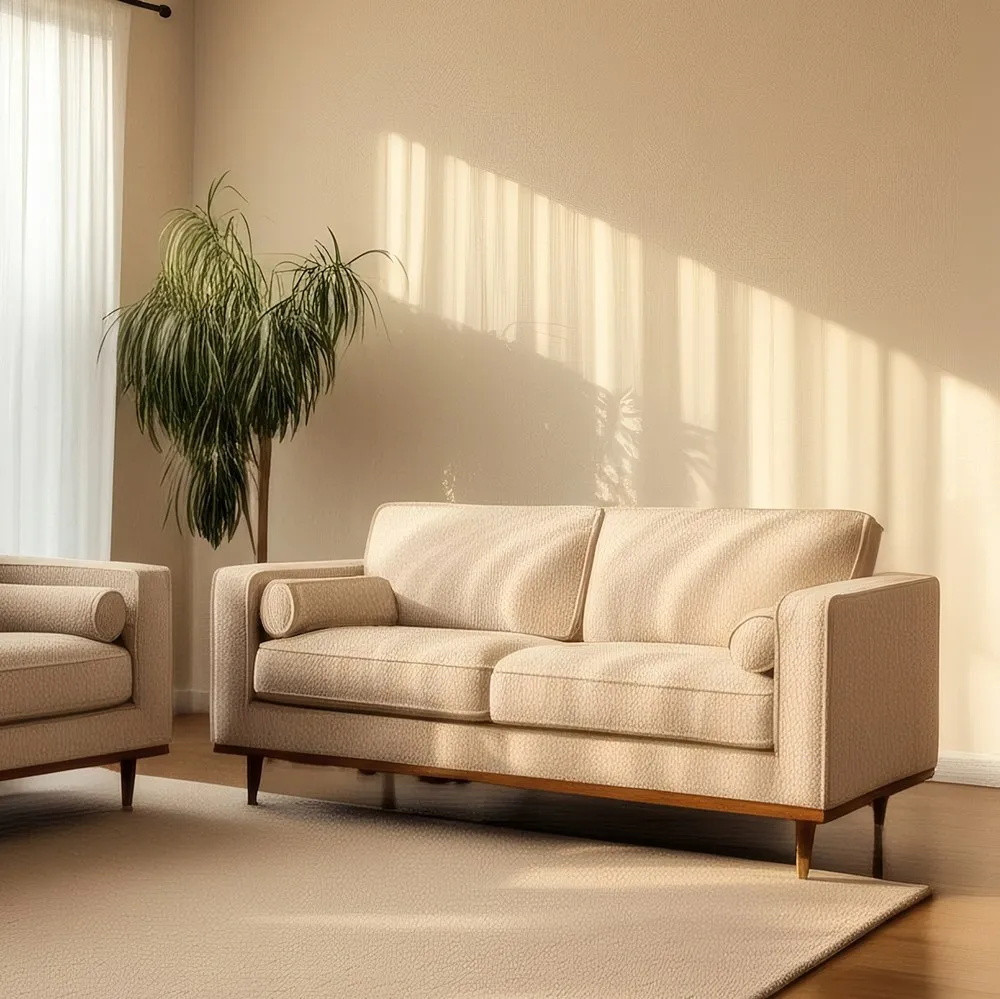 Voici un canapé classique et intemporel pour votre salon en tissu beige style moumoute avec ses coussins déhoussables. Cubique et à la fois élégant, ce canapé est disponible en 2 ou 3 places et dispose d'accoudoirs hauts pour s'intégrer facilement dans votre salon et pour vous offrir le meilleur confort.