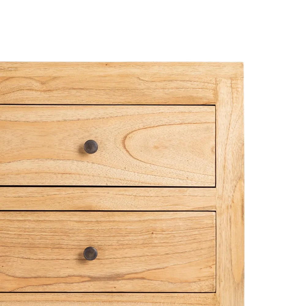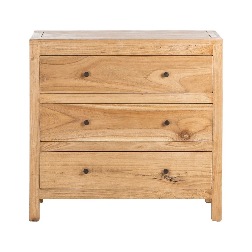 Moderne et cossue, cette commode trois tiroirs est entièrement réalisée en bois massif de mindi naturel. Dans l'entrée, un bureau, la pièce à vivre ou la chambre à coucher, elle vous offre de nombreux rangements pour votre linge de maison, vos papiers, vêtements ou autre. Cette commode en bois de mindi apporte chaleur et douceur à votre décoration d'intérieur.