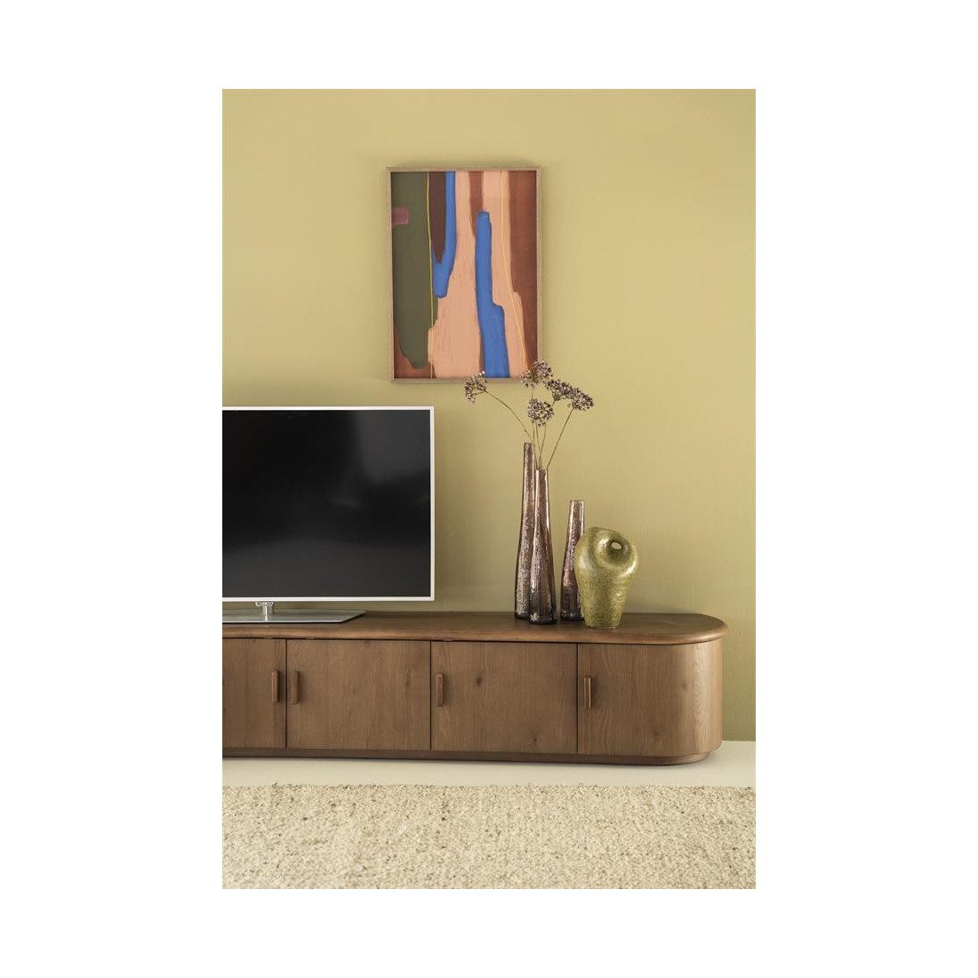 Dans votre salon moderne, optez pour ce meuble hifi arrondi en forme de vague réalisé en bois de chêne et placage chêne. Il vous offre de nombreux rangements derrière ses 4 portes. Vous avez le choix entre le modèle clair qui viendra égayer votre décoration d'intérieur dans votre pièce à vivre ou le modèle plus foncé qui propose un look plus vintage.