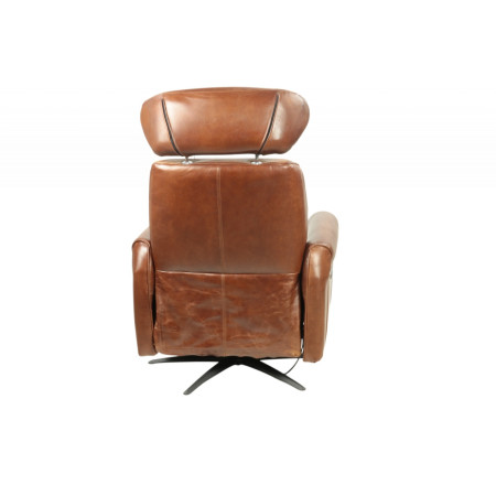 Pivotant à 280°, inclinable jusqu'à la position couchée, ce fauteuil est idéalement conçu pour la détente ! Avec son système électrique motorisé intégré sans oublier son port USB pour vos chargements toujours à portée de main, en une seule pression de bouton vous vous retrouvez en position couchée pour vous relaxer devant un bon film ou pour votre sieste. Ce fauteuil haut de gamme avec appui tête très confortable, est fabriqué dans un cuir de vachette effet vintage et un rembourrage en mousse polyuréthane à forte densité (40 kg/m3) pour vous garantir ainsi le meilleur confort possible. Son piètement en acier inoxydable en forme d'étoile assure quant à lui une très bonne stabilité, c'est le fauteuil relax et grand confort par excellence !