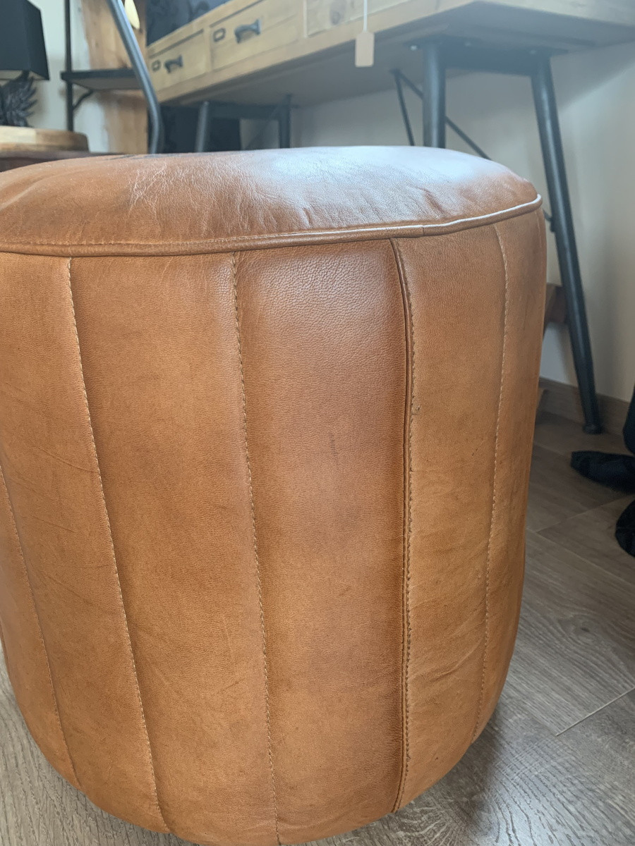 Pouf rond en cuir Brooklyn