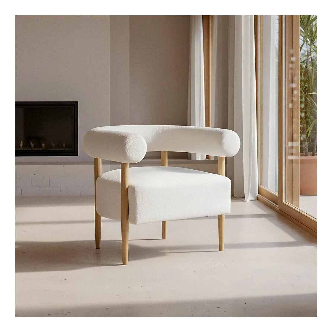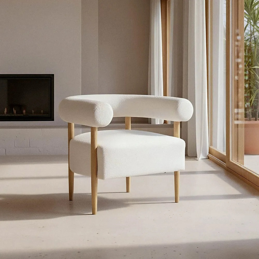 Fauteuil moderne en tissu moumoute et hévéa