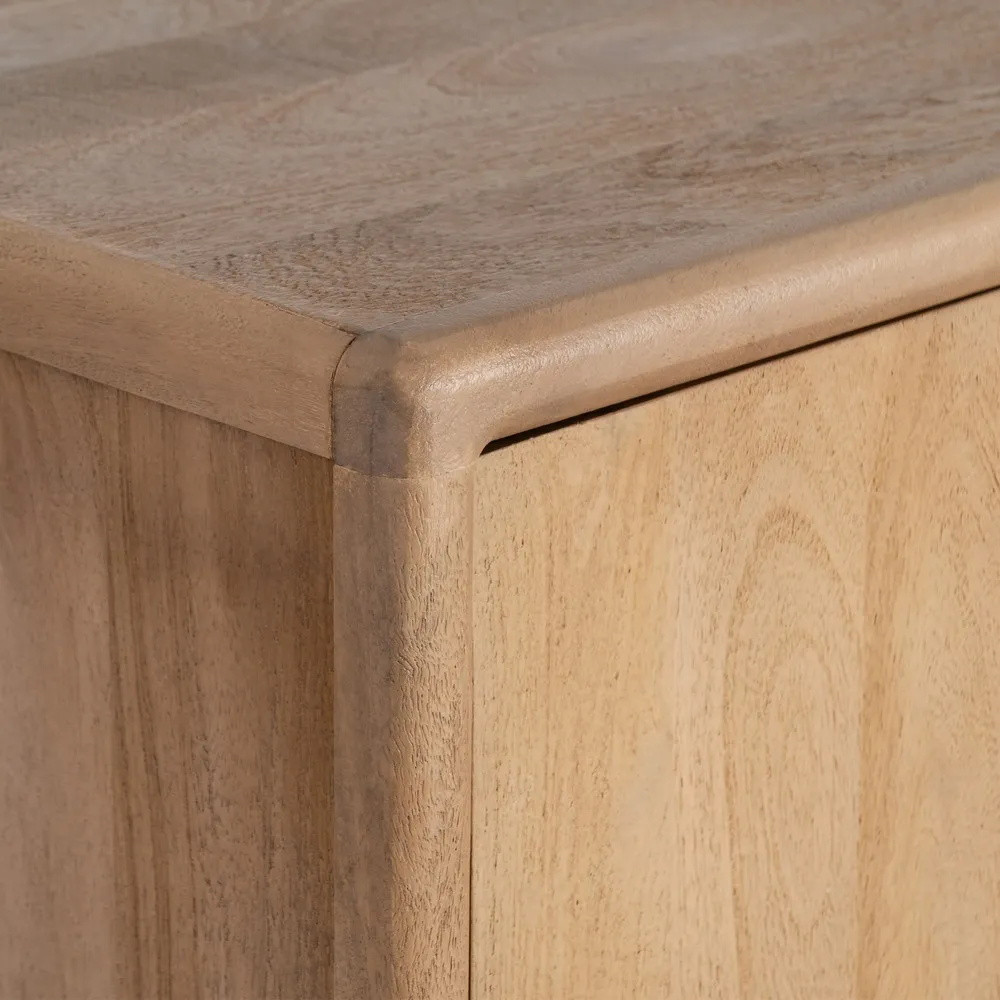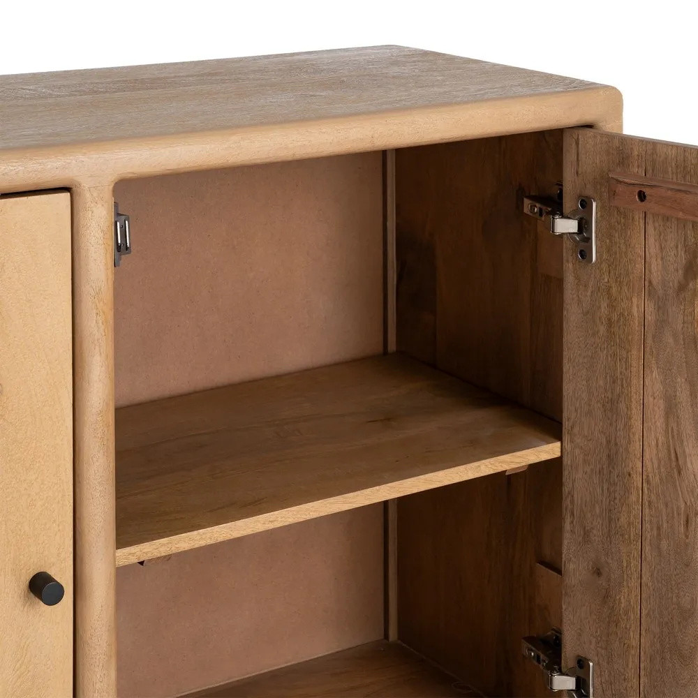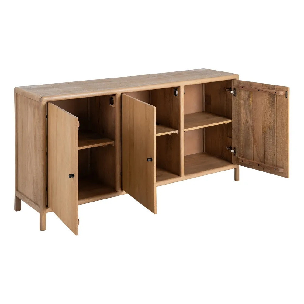 Ce magnifique buffet est fabriqué en bois de manguier massif avec une teinte naturelle pour un rendu zen ! Tout à fait dans l'air du temps, ce buffet 3 portes offre de nombreux rangements pour votre vaisselle et linge de maison. Ses lignes droites et sobres sont adoucies par ses angles arrondis. De subtiles poignées noires très discrètes viennent se confondre à l'ensemble de ce meuble au look scandinave.