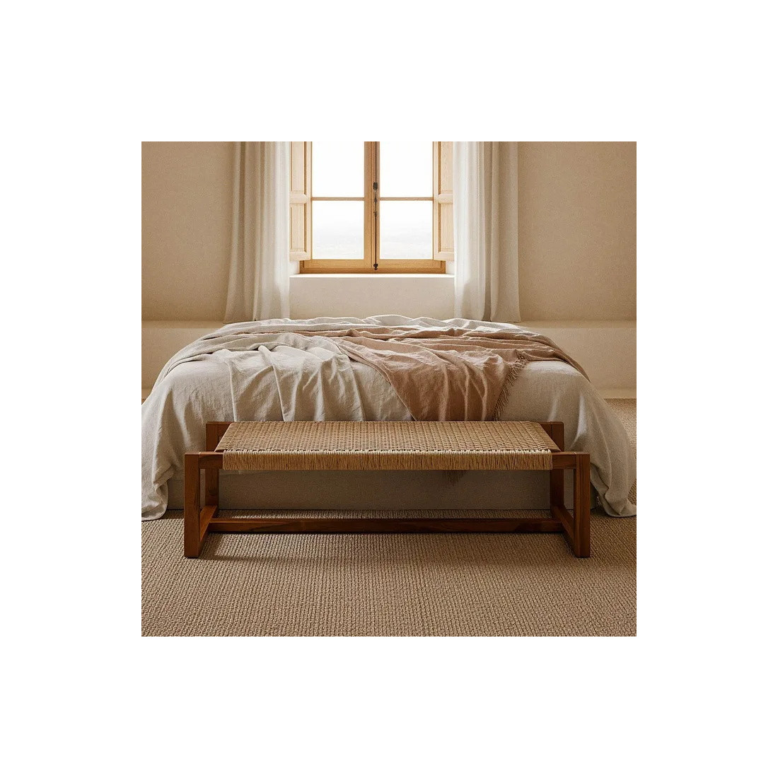 Réalisée en bois de teck massif teinté et dans un design rectiligne moderne, ce banc/banquette propose une assise en rotin synthétique avec un rendu très naturel. Pratique et esthétique, vous pourrez utiliser cette banquette dans le hall d'entrée de votre maison, dans la pièce de vie autour de la table basse du salon ou en pied de lit dans la chambre à coucher.