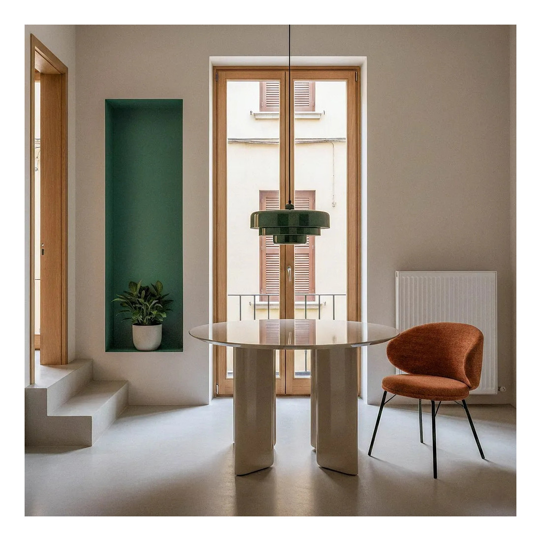 La forme ronde de cette table de cuisine apportera convivialité tout au long de vos repas entre amis ou en famille.