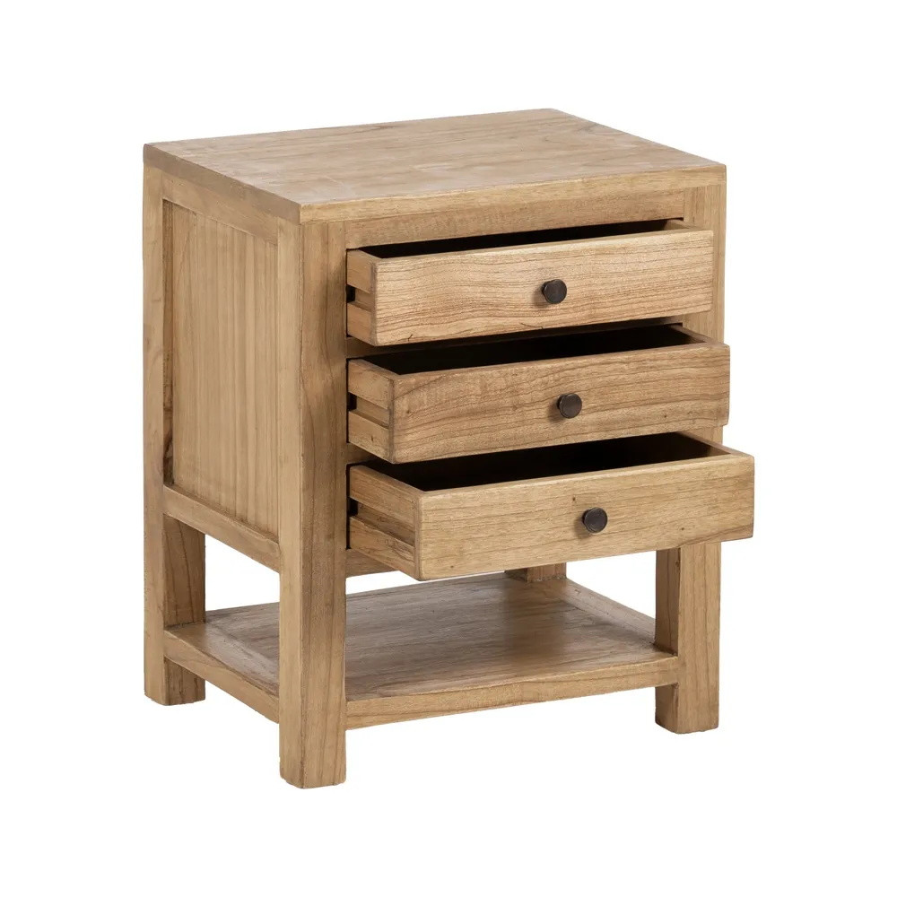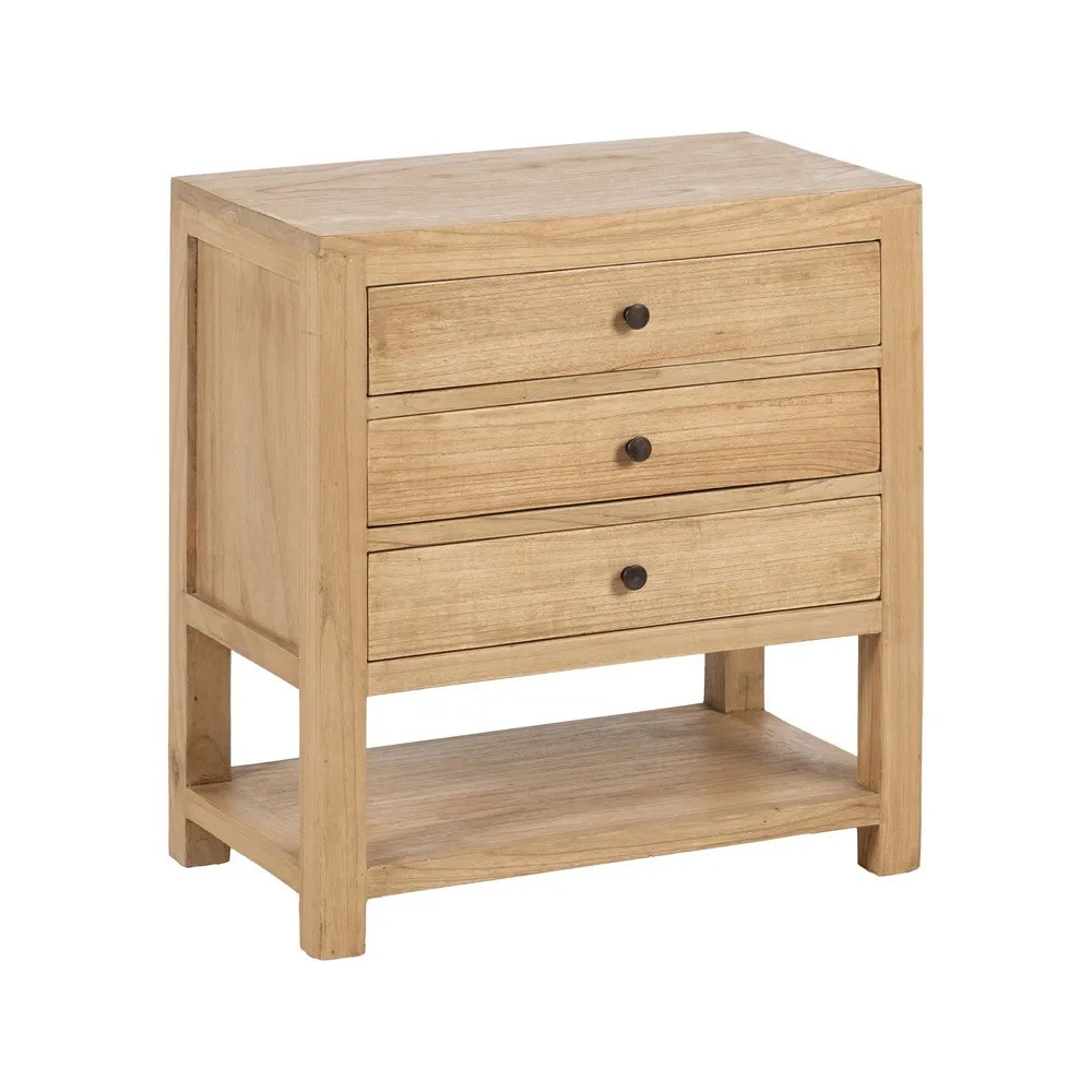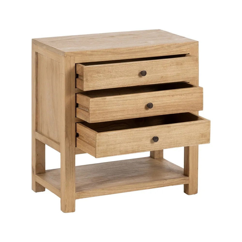 Chevet 3 tiroirs avec tablette mindi massif