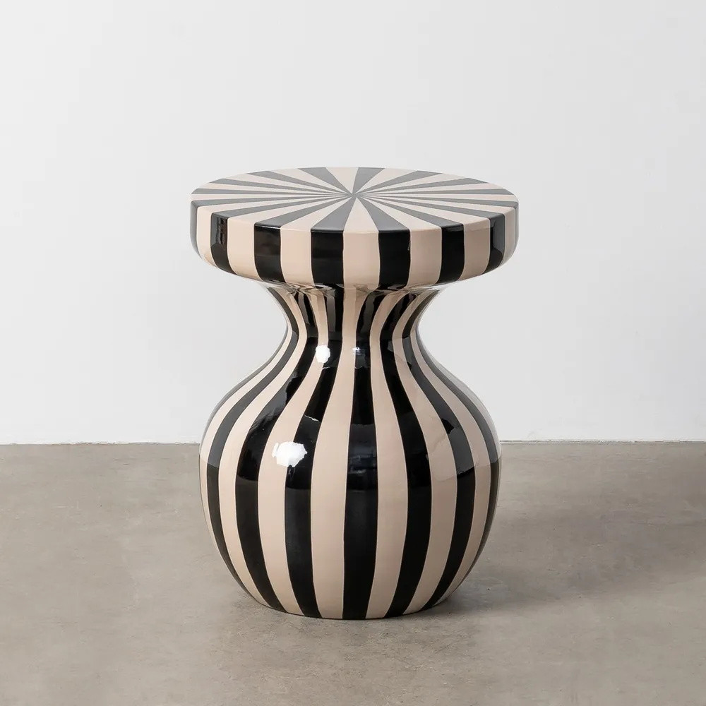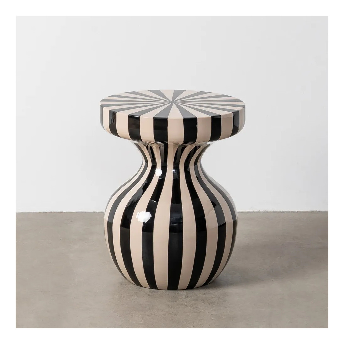 Fabriquée entièrement en métal recouvert d'une laque au motif zébré noir et blanc, cette table d'appoint est réellement un objet décoratif qu'il faut avoir chez soi !