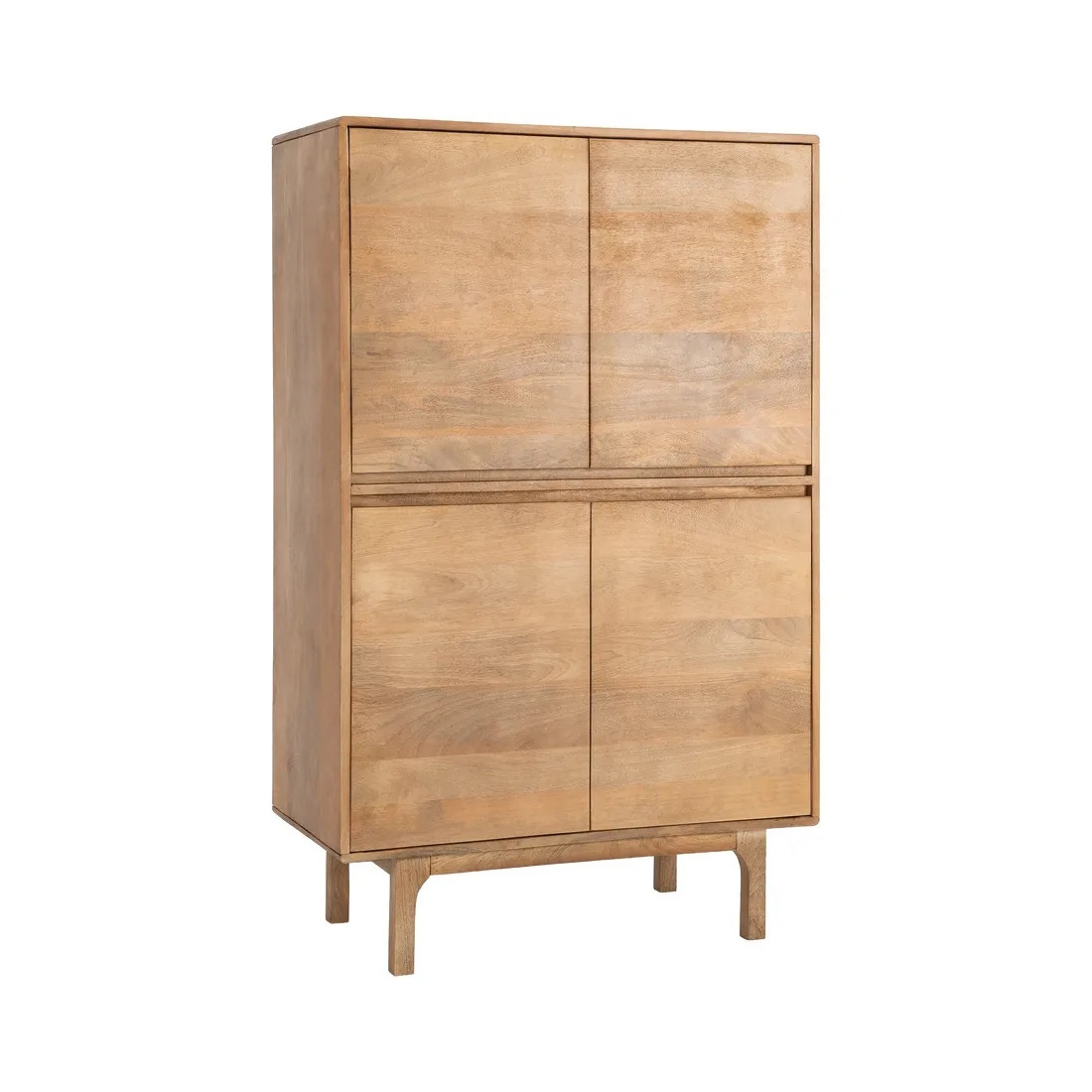 Cette armoire 4 portes est réalisée en bois massif de manguier avec un piètement surélevé pour plus de modernité également pour son côté pratique d'entretien au quotidien. A l’intérieur, vous trouverez une étagère derrière chaque porte ce qui vous offrira du rangement et de l'organisation sur deux niveaux.