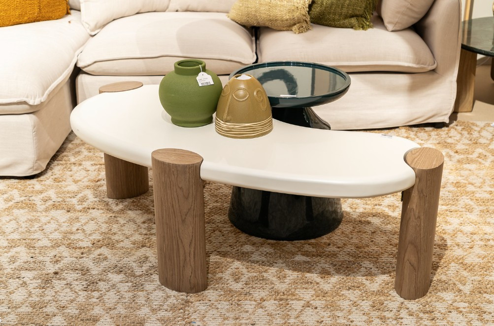 Table de salon style organique forme haricot