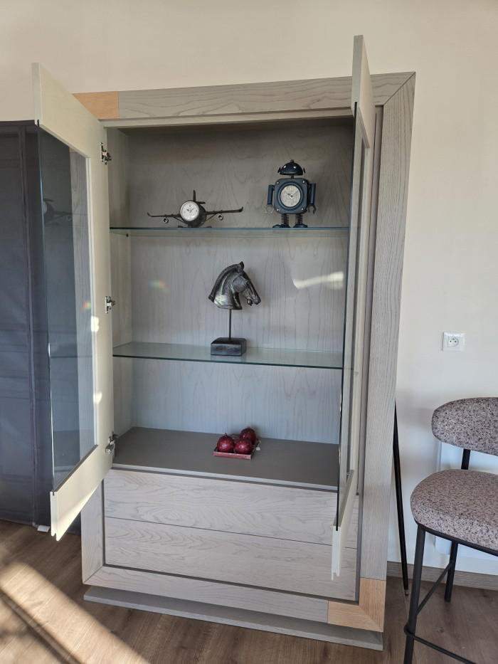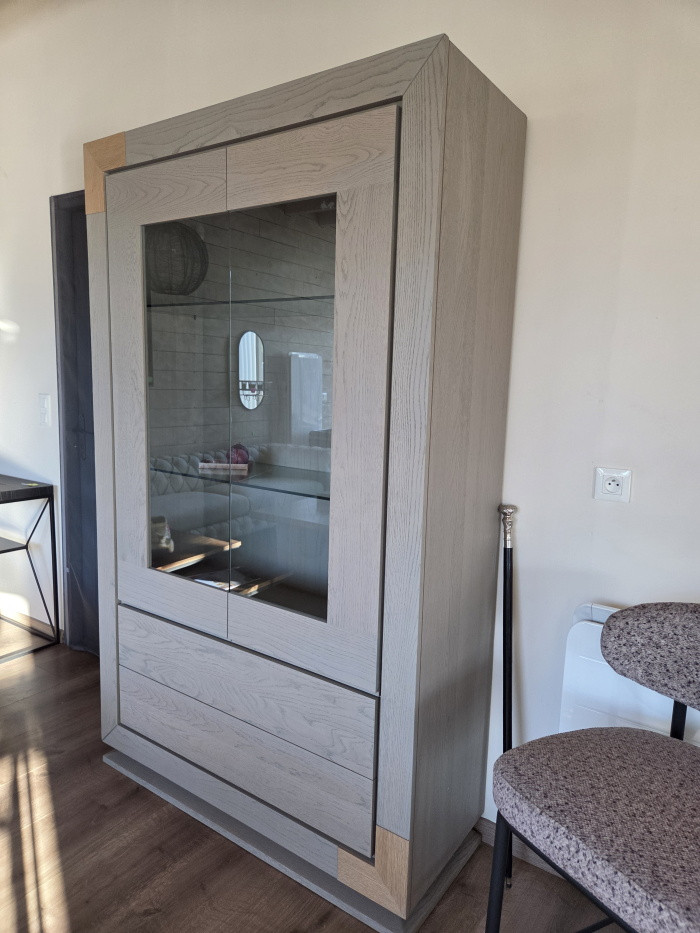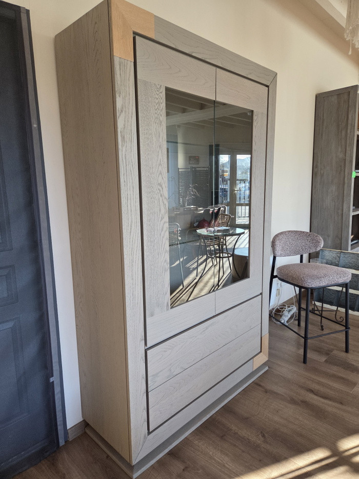 Vitrine Onyx deux portes et deux tiroirs en chêne massif