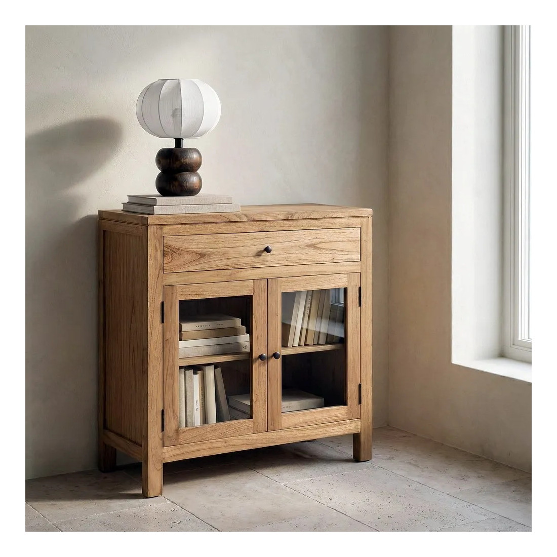 Qu'il soit avec seulement 2 portes pour un petit hall d'entrée, ou avec 4 portes pour la salle à manger ou le bureau, ce meuble de rangement vitré est fabriqué en bois massif de mindi. Un bois exotique très résistant et chaleureux pour illuminer votre intérieur.