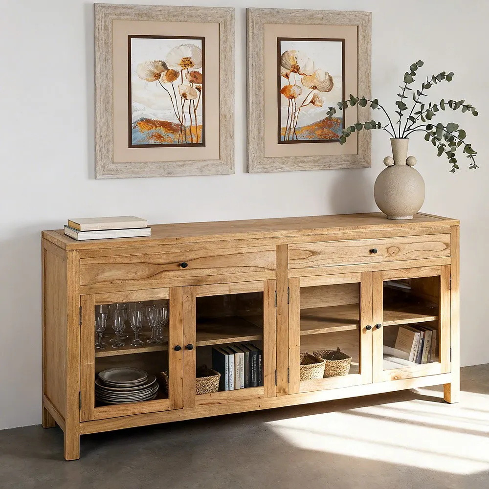 En guise de buffet pour la cuisine, de meuble TV pour le salon, de petit meuble d'appoint dans l'entrée de votre appartement ou de vitrine pour organiser tous vos livres et documents dans le bureau, que ce soit la version courte ou longue vous serez conquis par son style naturel idéal dans une décoration "Campagne chic".