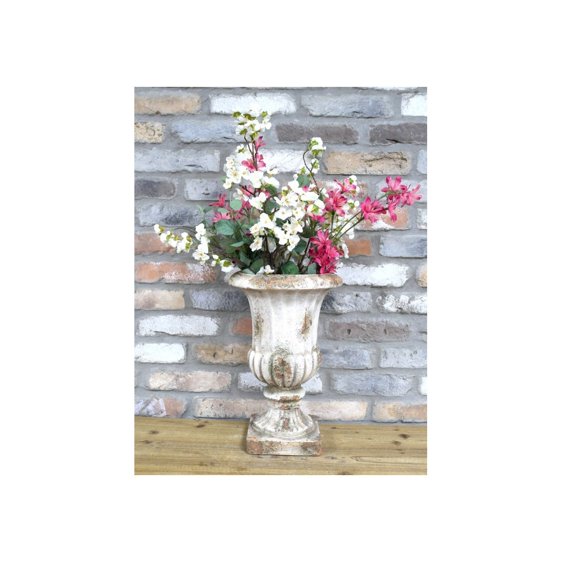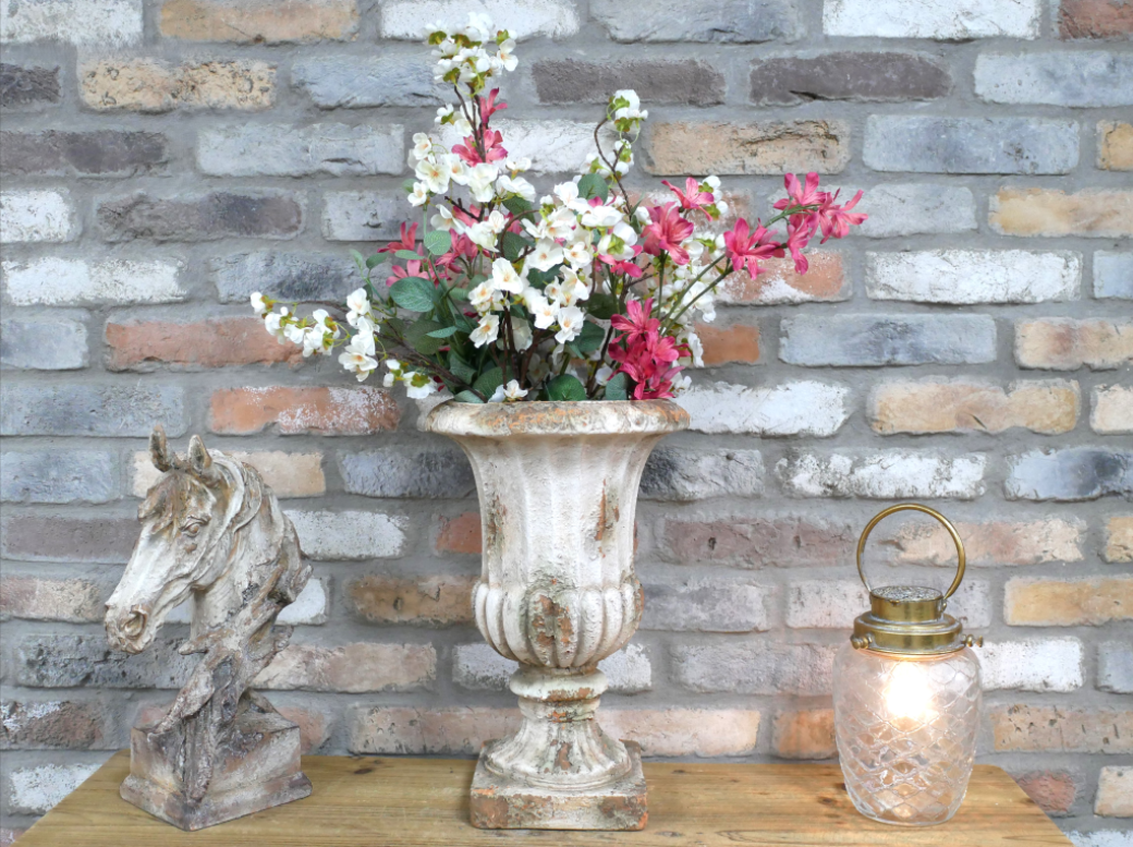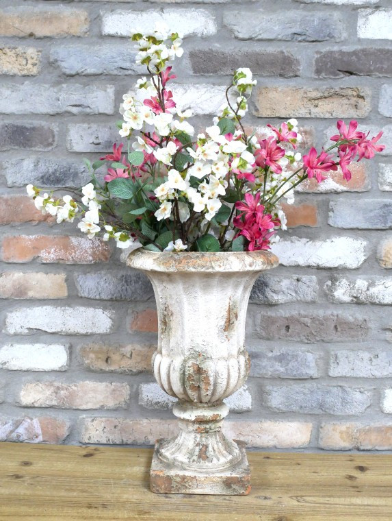 Ce vase Médicis décoratif s’inspire des formes classiques des urnes antiques pour apporter une touche d’élégance et de caractère à votre intérieur. Sa finition patinée lui confère un aspect vieilli très réaliste, parfait pour une décoration chic, vintage ou campagne.