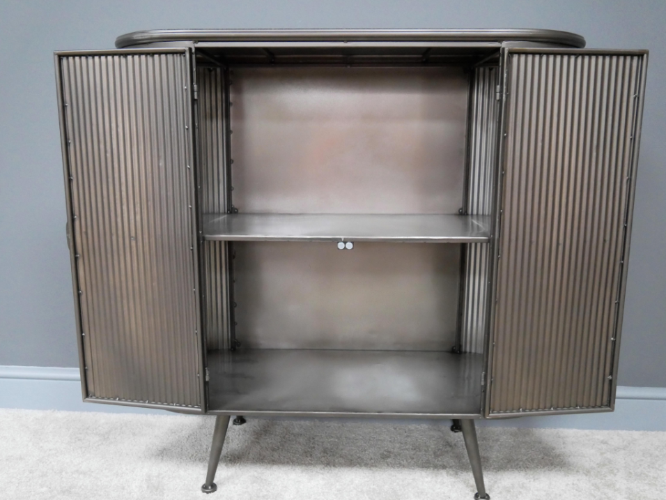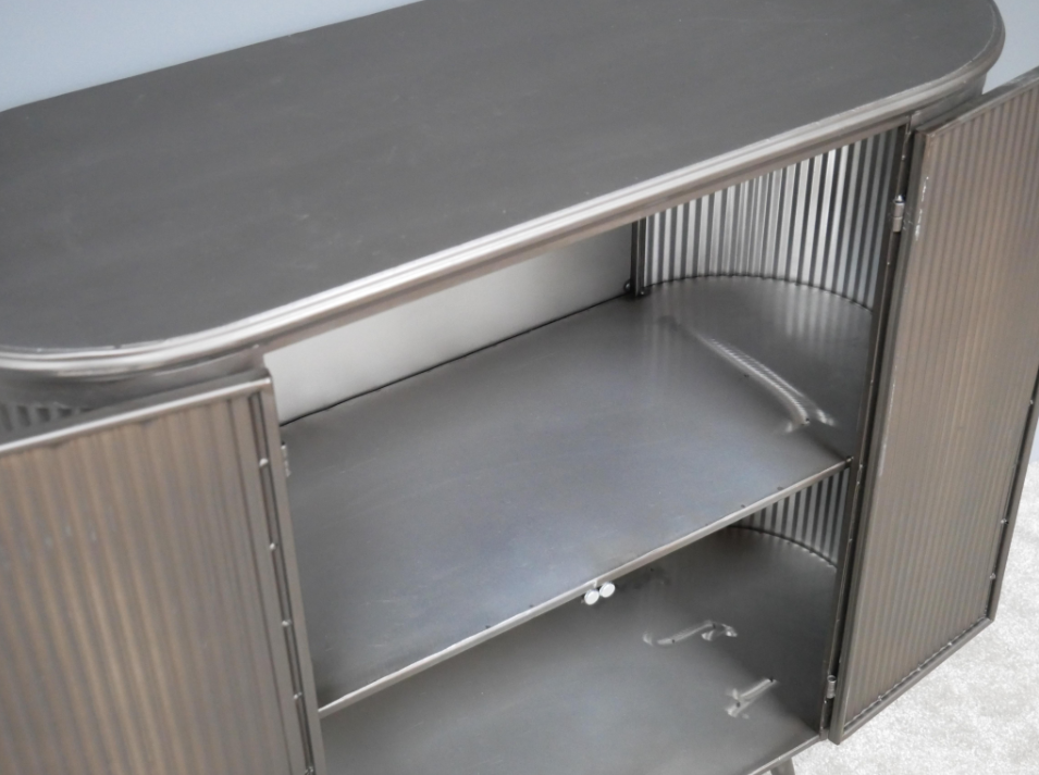 Buffet industriel en métal nervuré – Meuble de rangement design loft