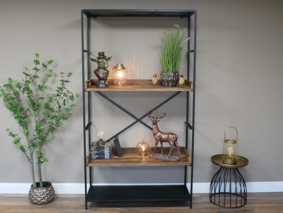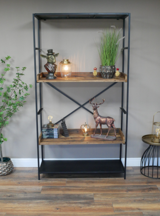 Apportez une touche loft new-yorkais à votre intérieur avec cette étagère industrielle alliant structure en métal noir et plateaux en bois chaleureux.