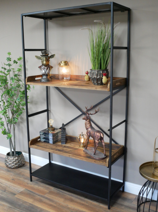 Etagère industriel en métal noir et bois